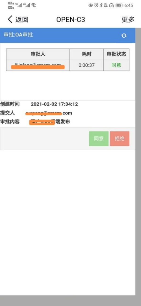 只看第一个处理审批的人的结果。有人审批后,之后的审批无效。