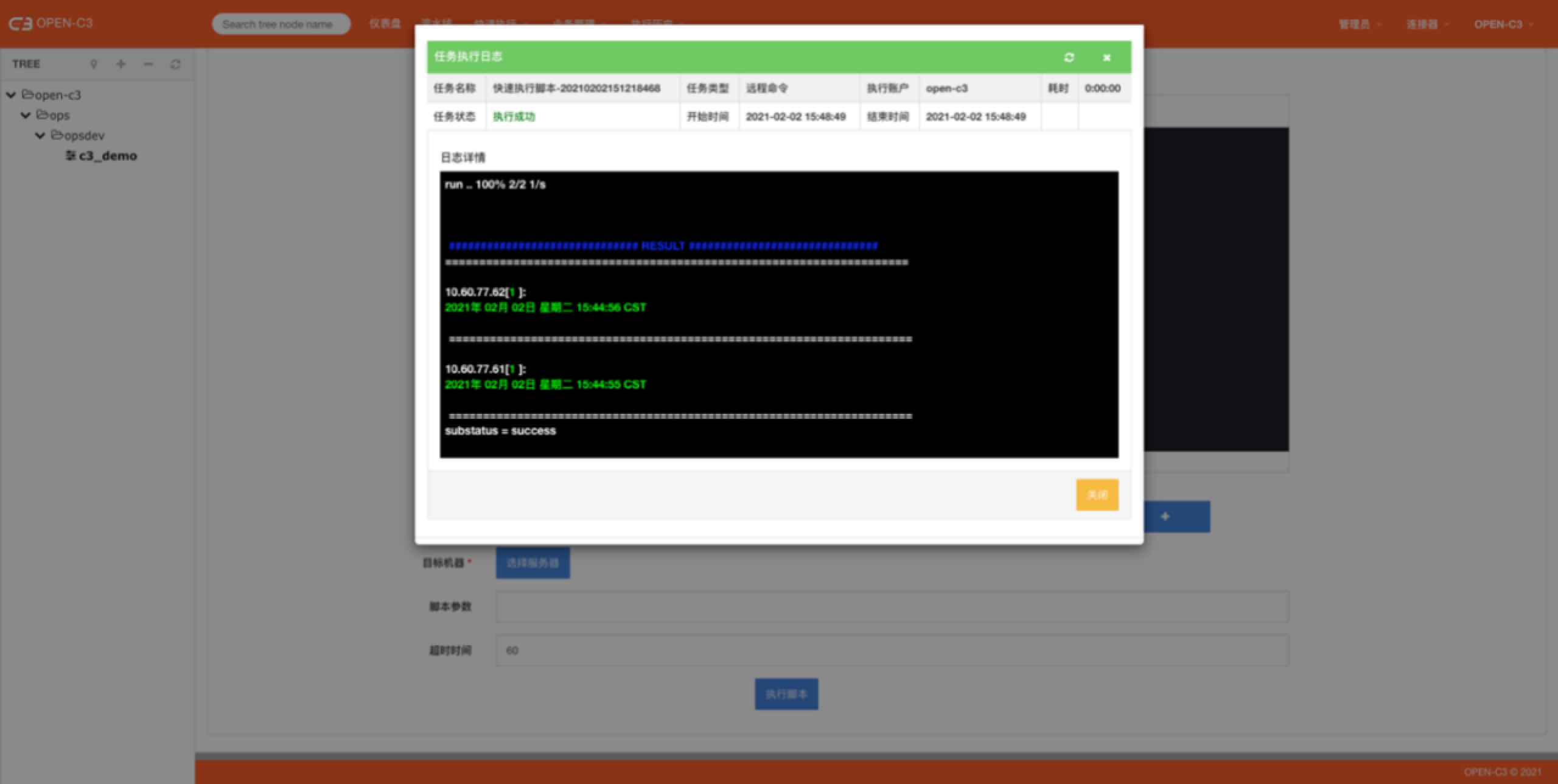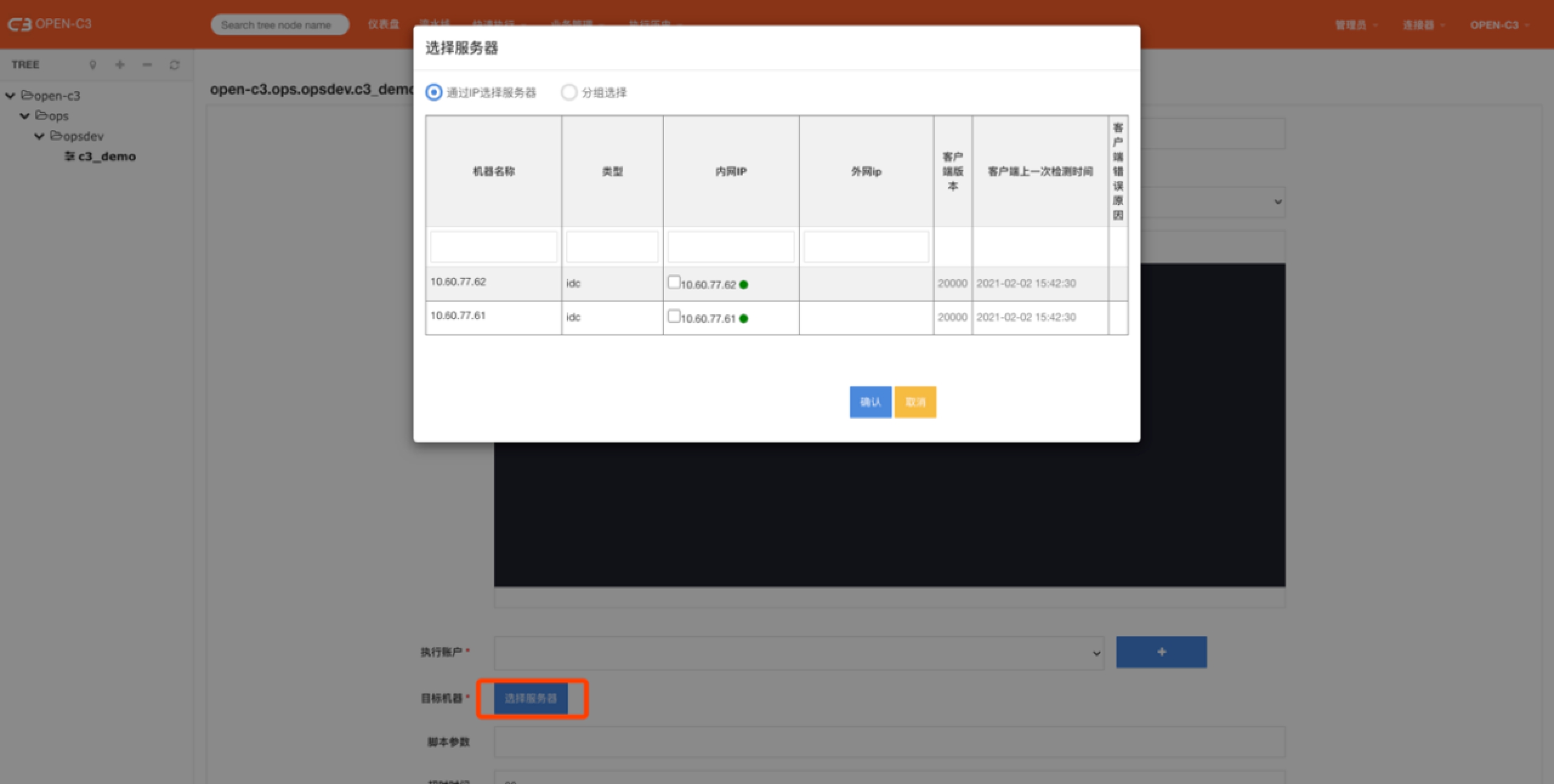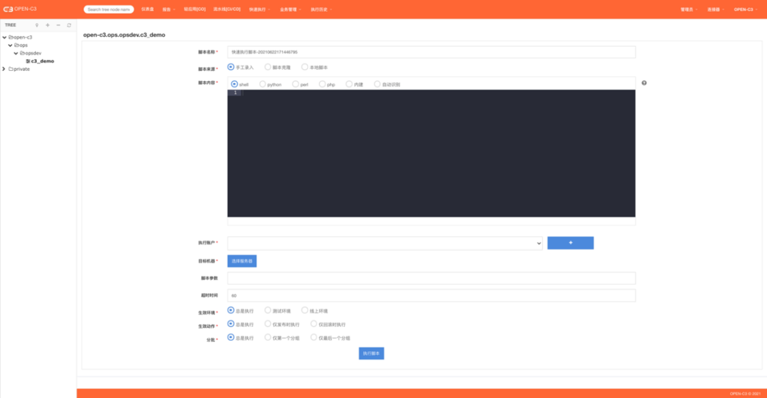 快速执行脚本就是在服务树节点下,选择要操作的机器,在机器上执行之前保存的或者现写的脚本。