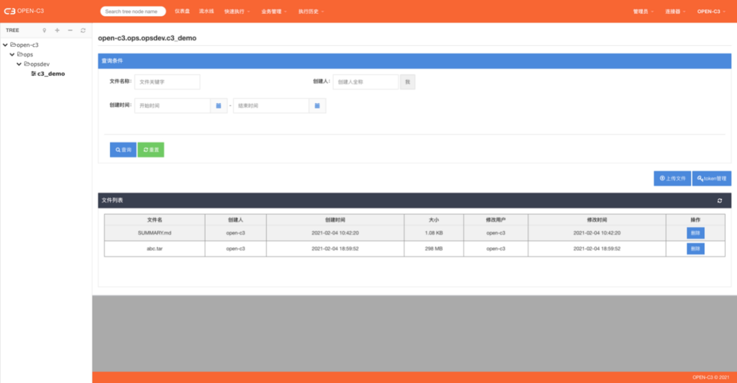 文件上传后系统会进行保存,用户可以用这些文件进行流水线发布,或者把文件上传到远程服务器上。