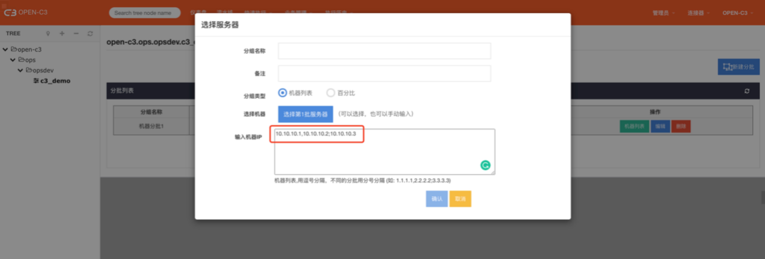 机器列表,用逗号分隔,不同的分批用分号分隔 (如: 1.1.1.1,2.2.2.2;3.3.3.3)