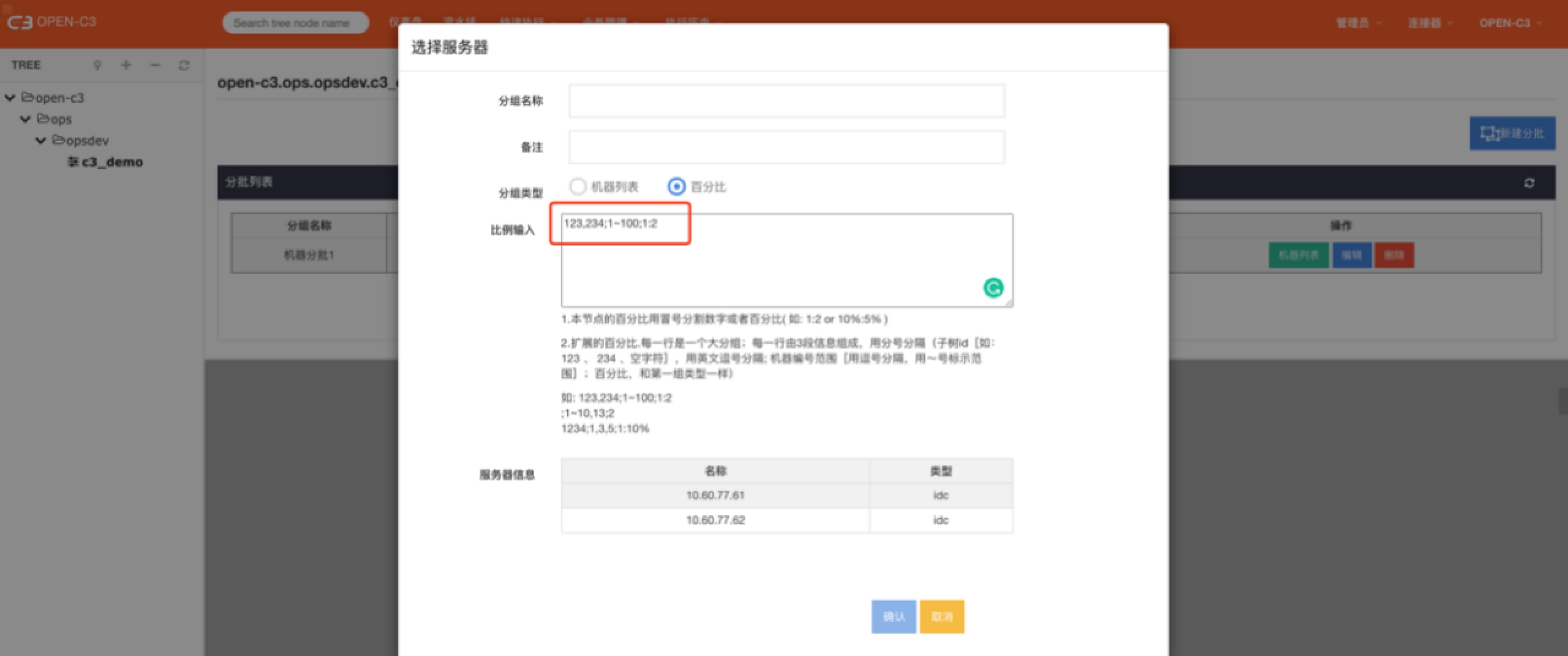 1.本服务树节点的百分比用冒号分隔“数字”或者“百分比”( 如: 1:2 or 10%:5% )。