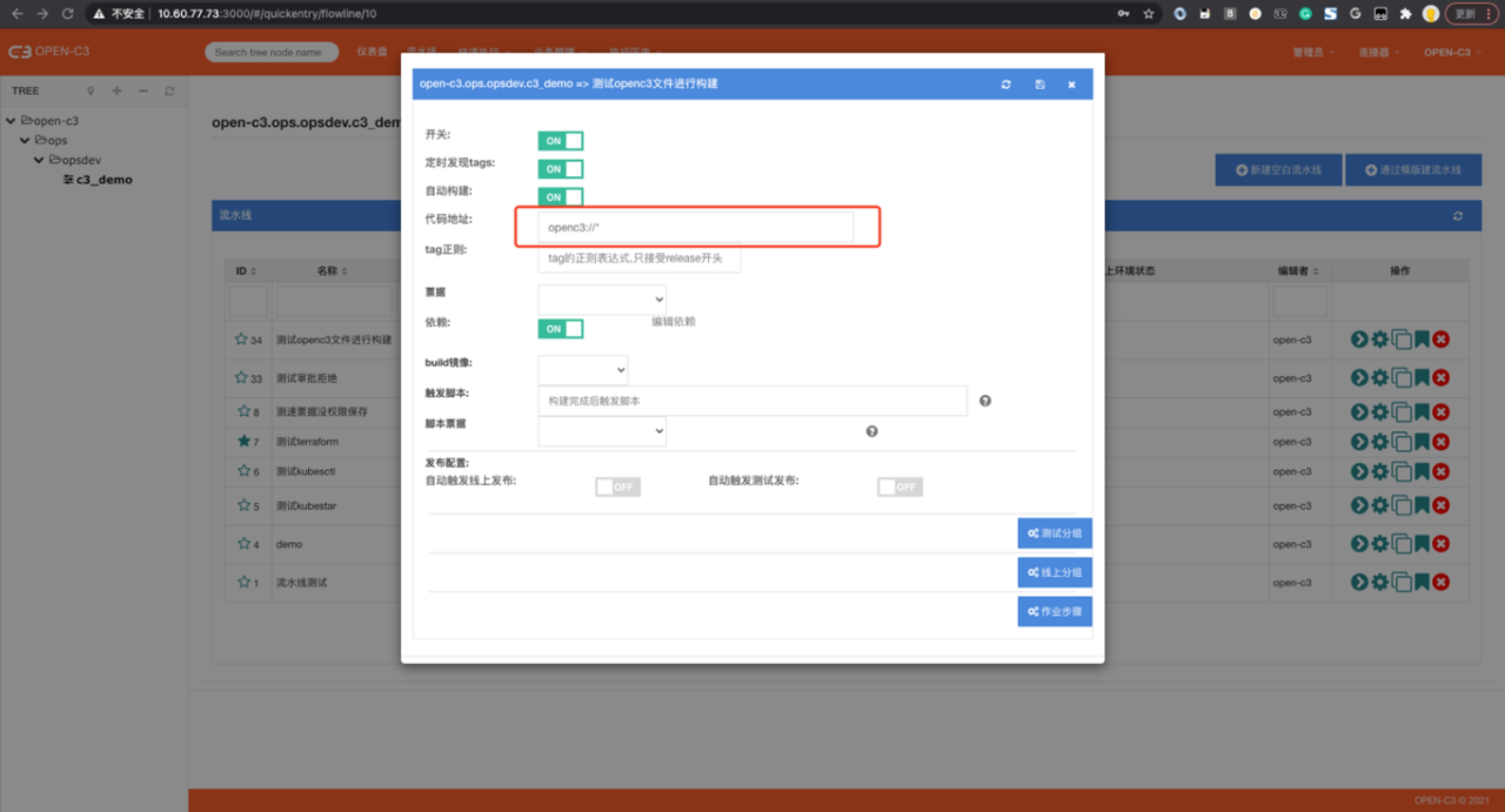 这样就可以不需要把编译好的代码从新放到git或者svn中打tag来触发OPEN-C3系统。