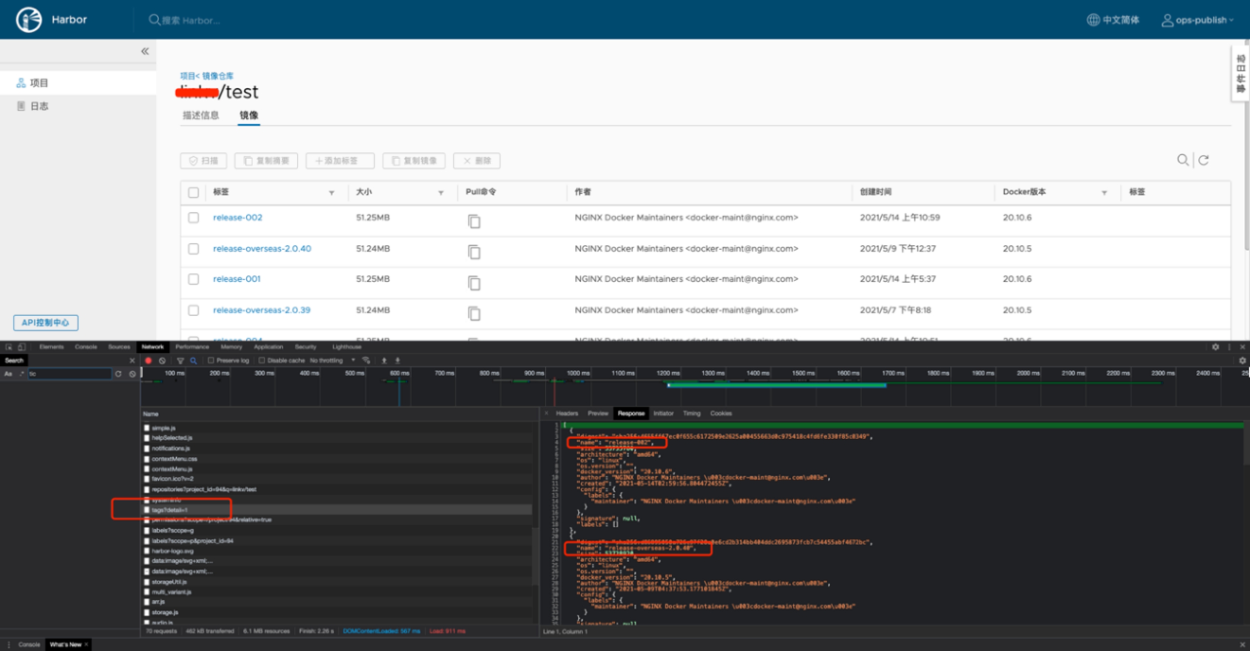 如果地址是“/tags”结尾,说明是harbor的镜像地址。