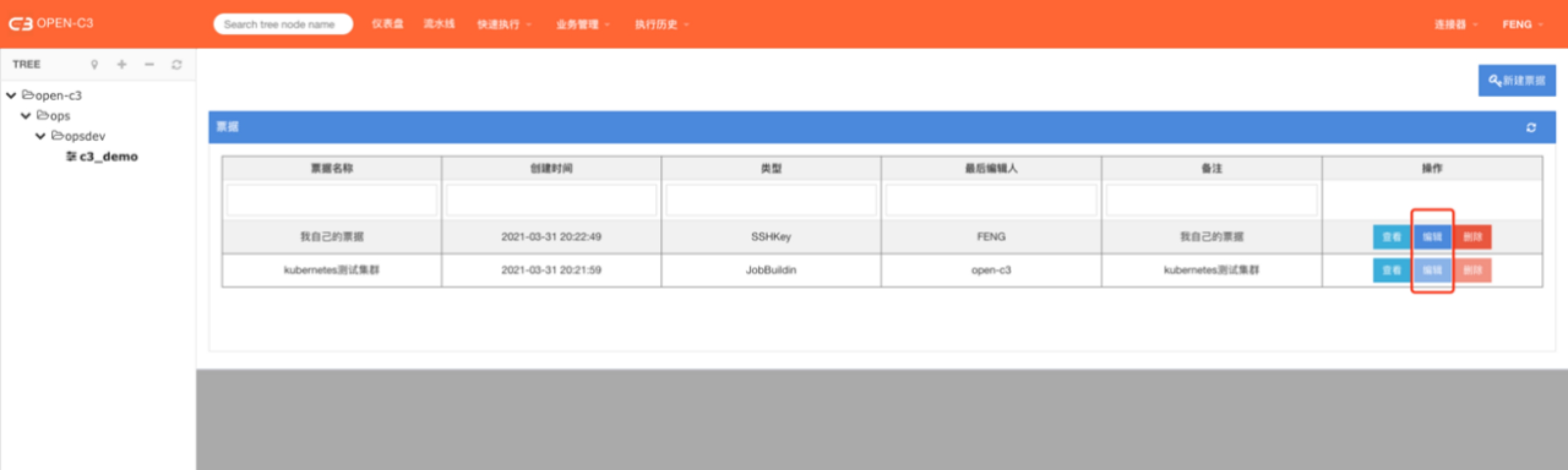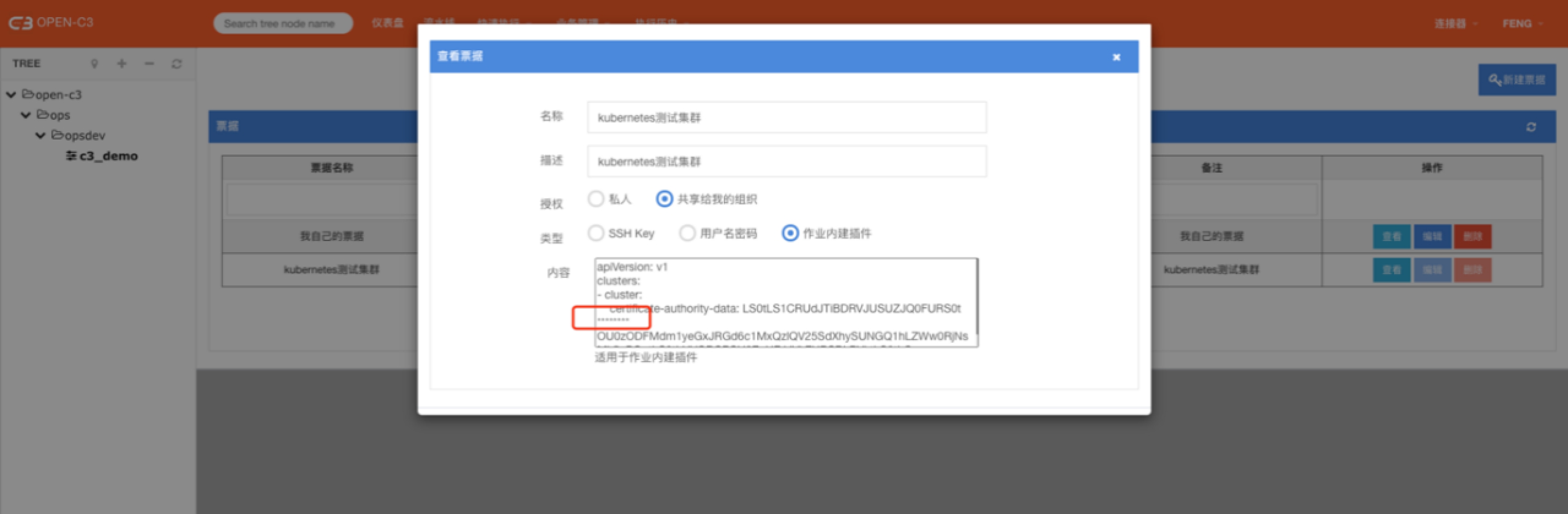 OPEN-C3系统中和权限认证相关的票据都在这里维护。