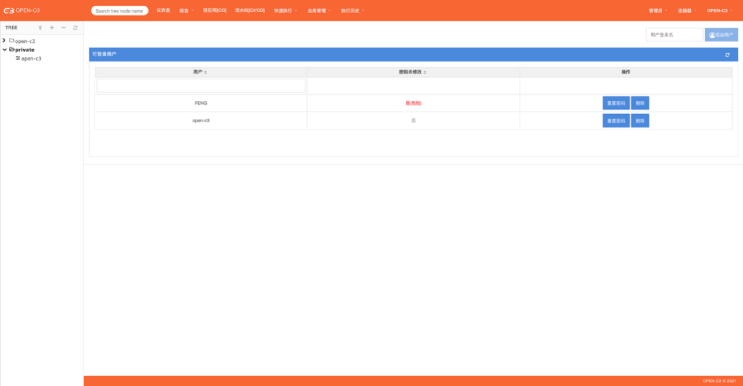 如果使用OPEN-C3内置的“用户管理”进行用户登录管理,可以在连接器的“用户管理”中进行操作。