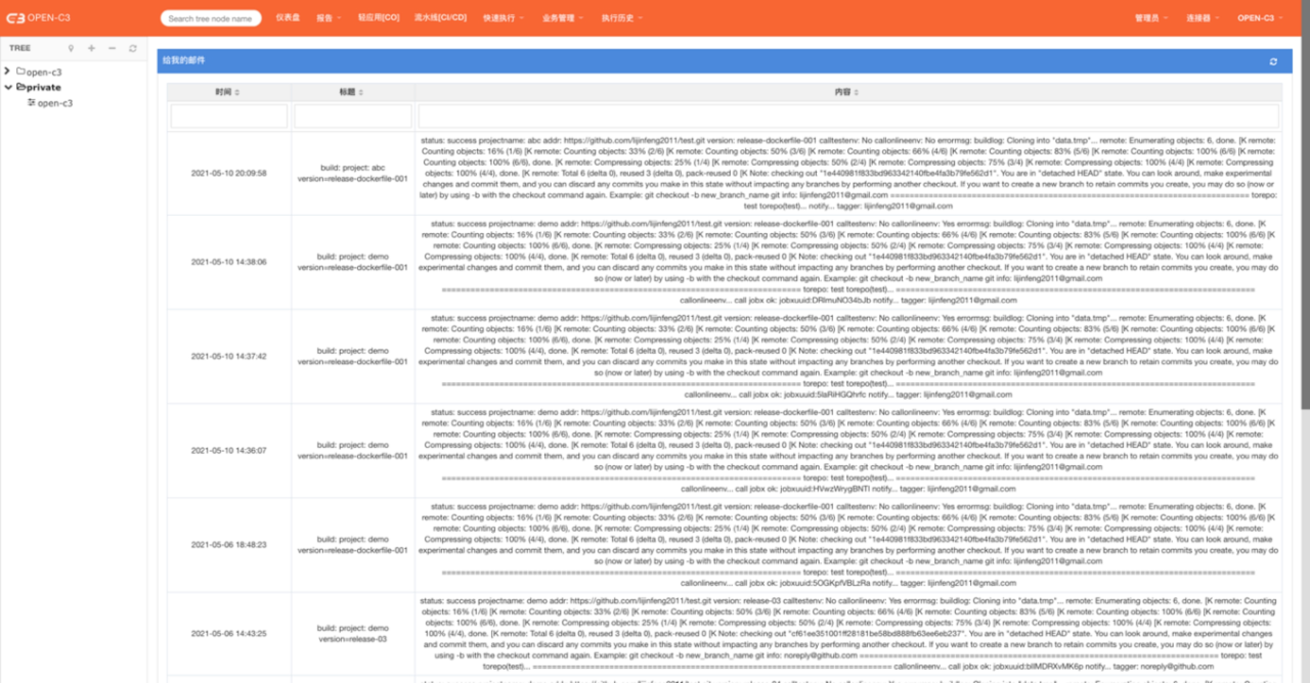 如果在连接器中没有把邮件进行对接,OPEN-C3发送的邮件内容会显示在连接器中的“给我的邮件”中。