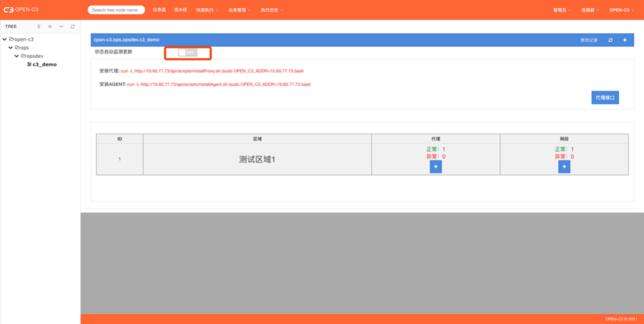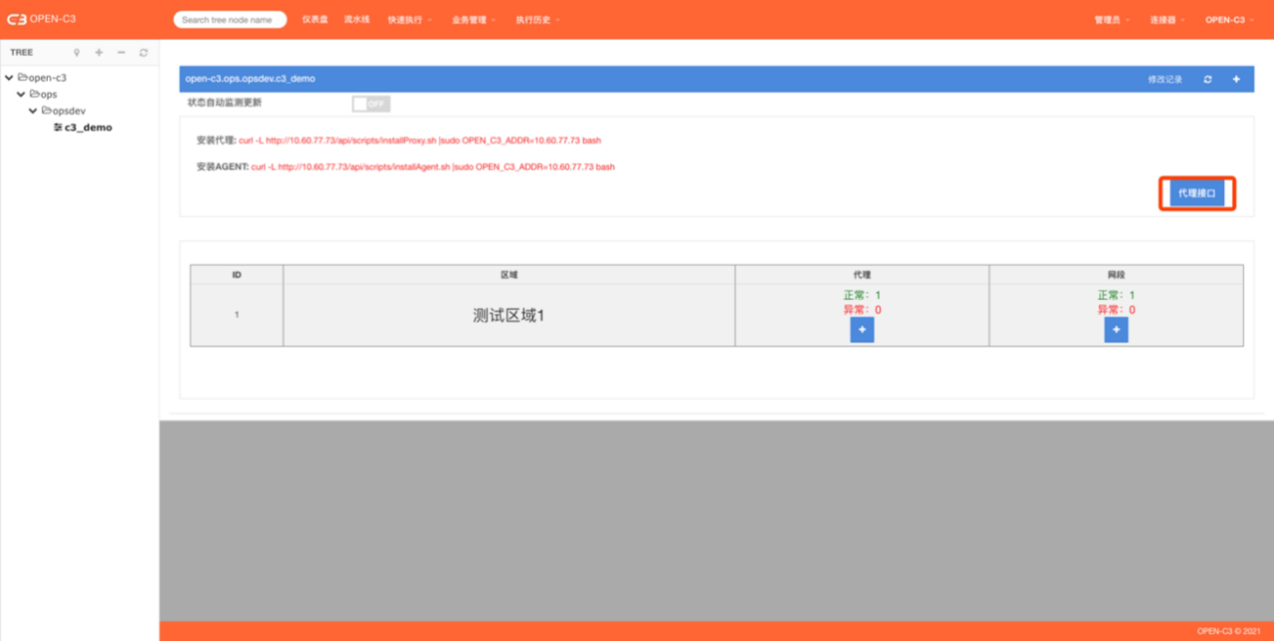 OPEN-C3对于服务器的操作依赖于AGENT。同时为了在隔离网络中进行数据同步和指令调用,需要根据实际需要进行代理的配置。