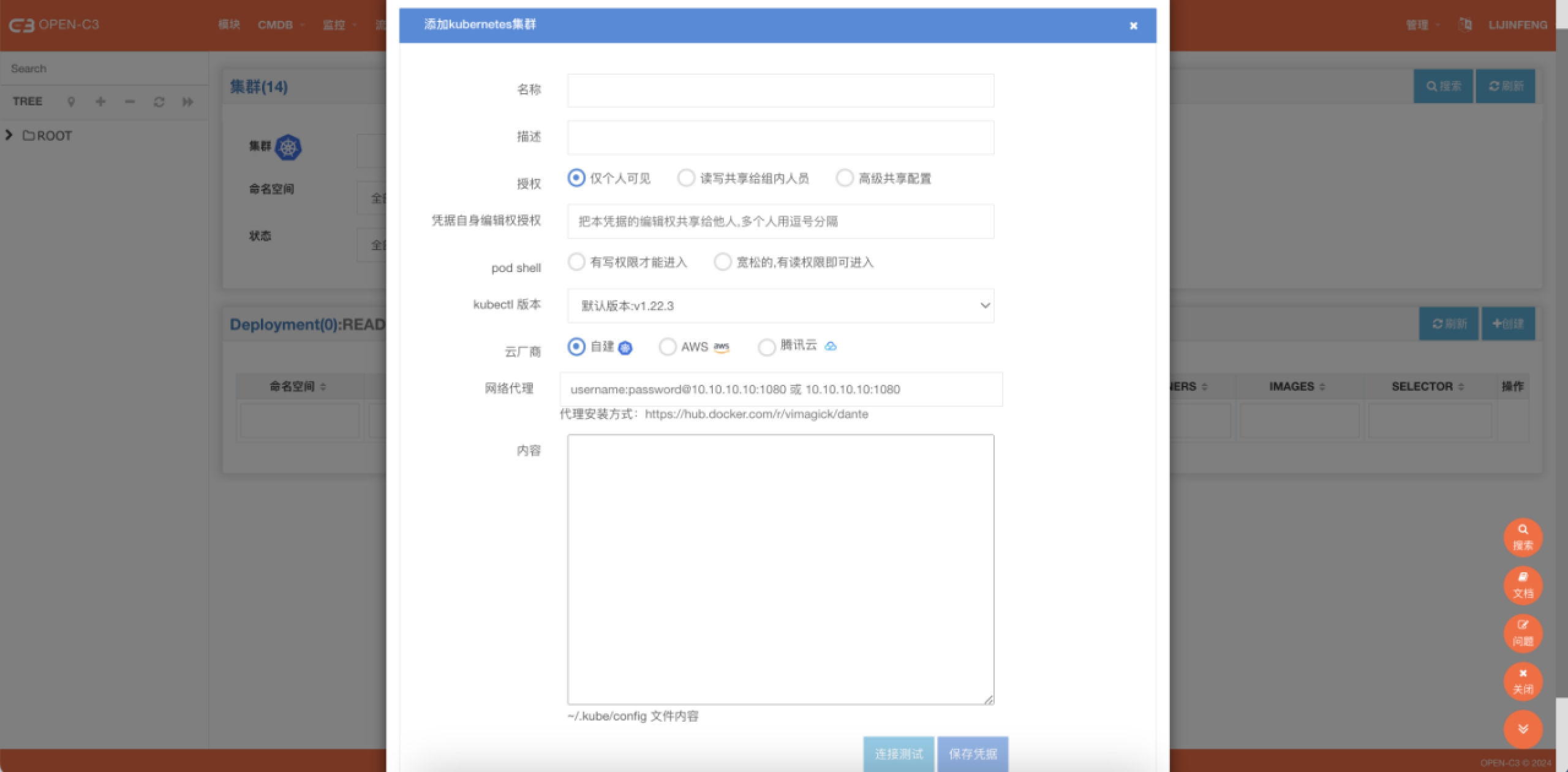 导航菜单进入: 容器集群 -> kubernetes应用管理页面