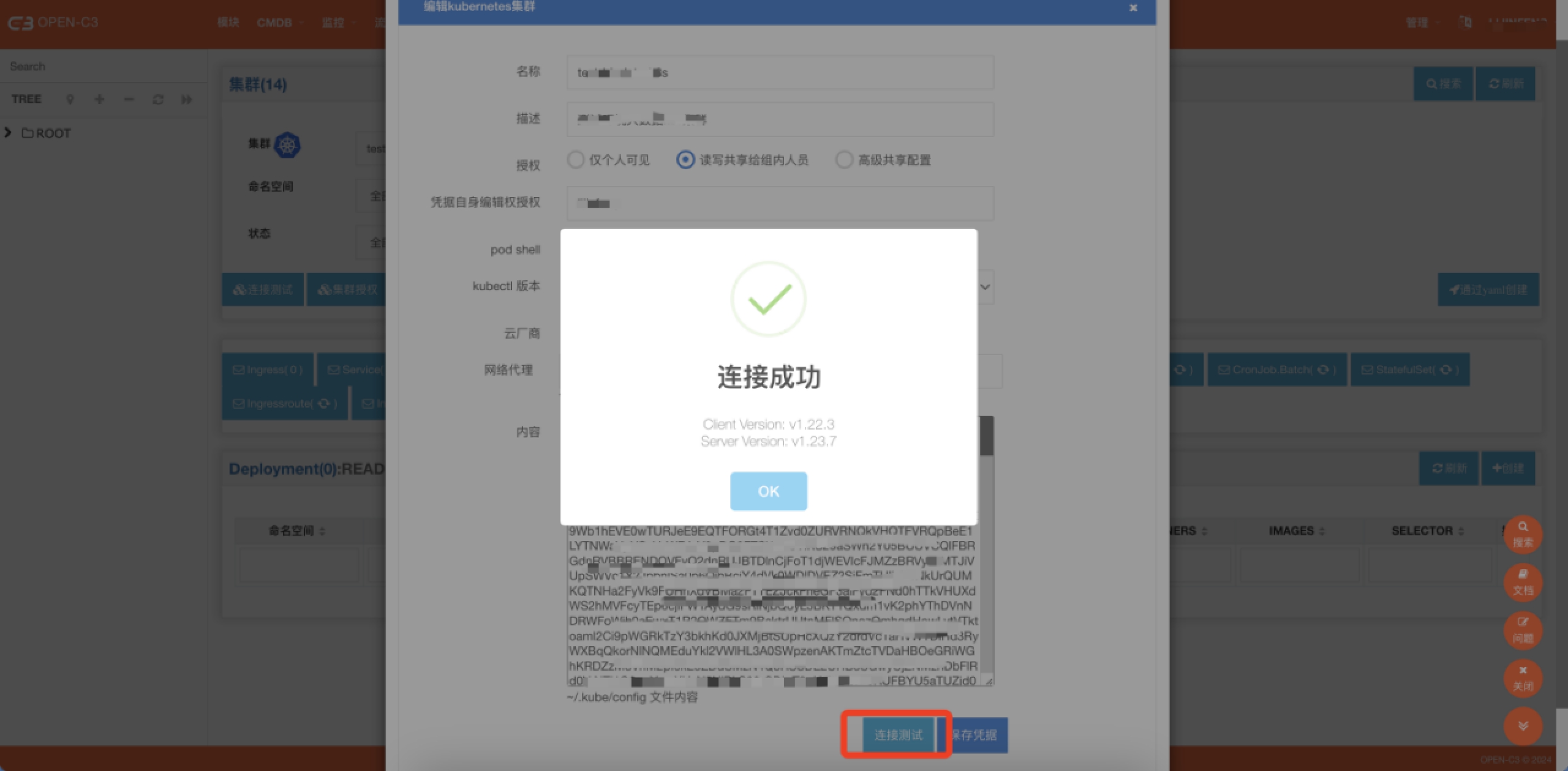 把内容填写后点击测试按钮,如果测试成功说明测试没有问题,然后点击保存凭据。